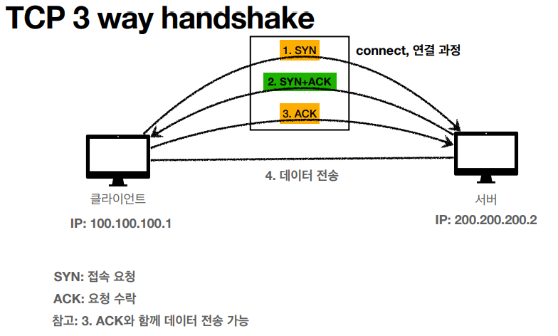 - 연결지향 - TCP 3 way handshake (가상 연결)
