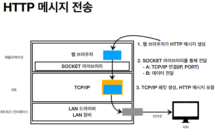 - TIP/IP 패킷 생성, HTTP 메시지 포함