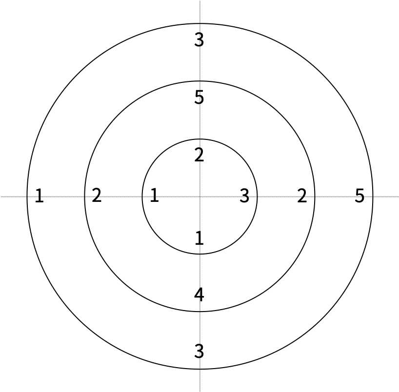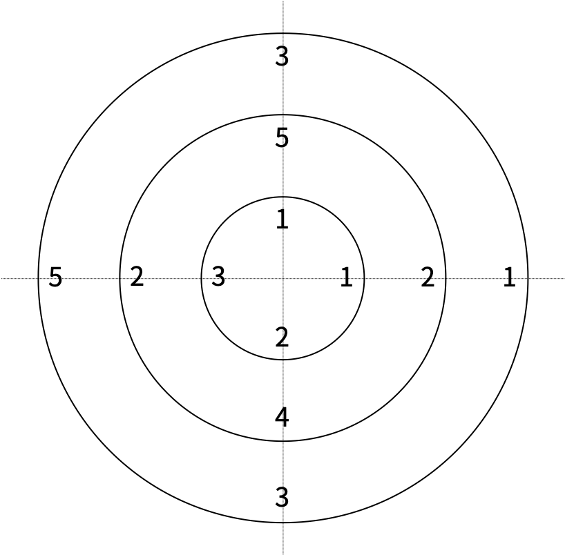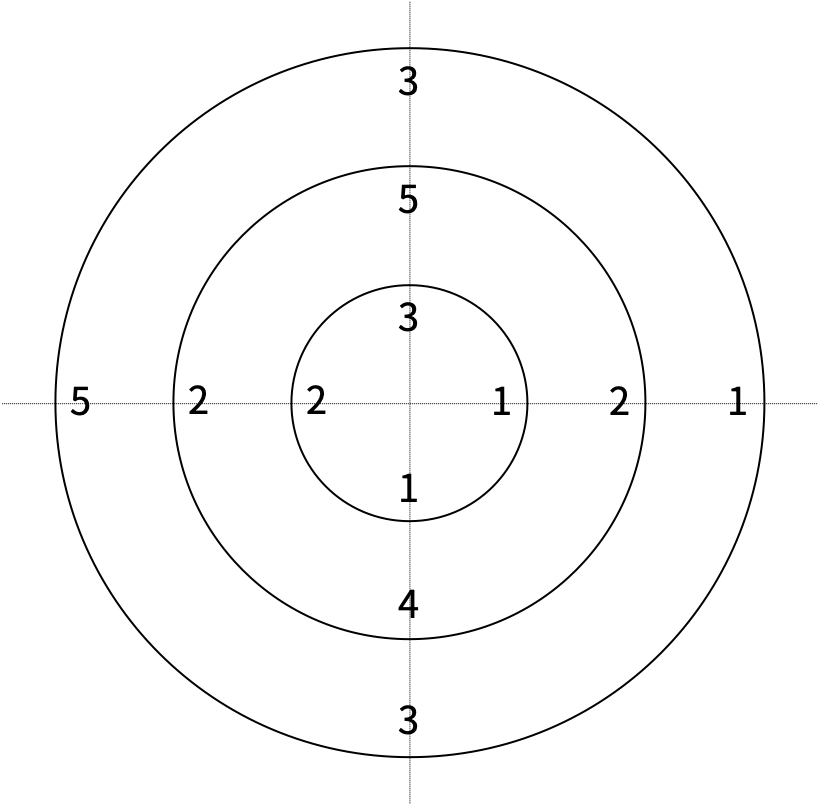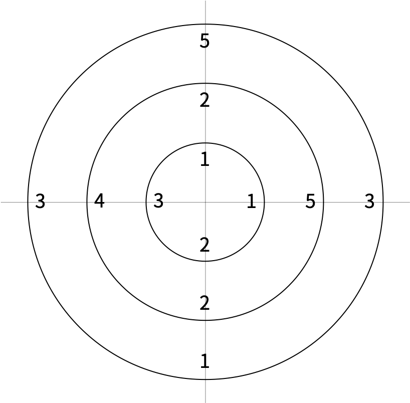 - 없는 경우에는 원판에 적힌 수의 평균을 구하고, 평균보다 큰 수에서 1을 빼고, 작은 수에는 1을 더한다.