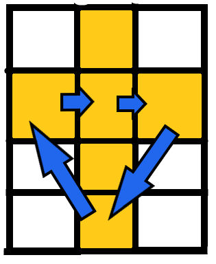 위의 경우는 가운데 열을 하나씩 위로 올리면 된다.