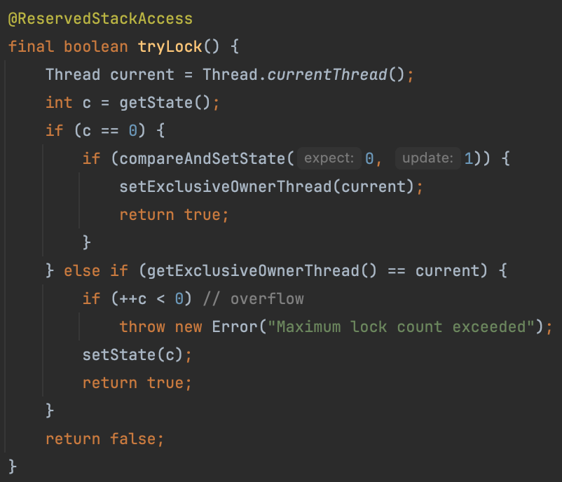 - 내부적으로 synchronized block 가 있거나 native method를 호출할 때는 이러한 동작이 불가능하다.