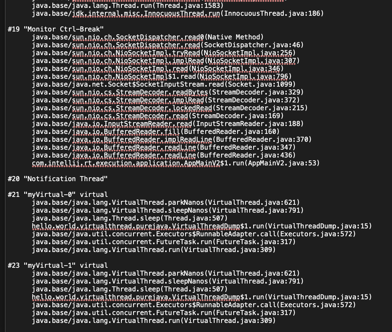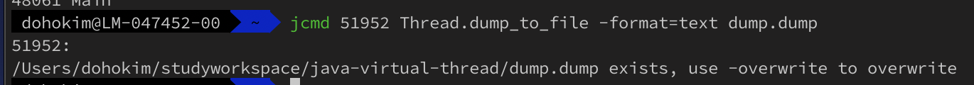 - jcmd <PID> Thread.dump_to_file -format=text <file> 해당 명령어를 통해서 virtual thread가 얼마나 떠있는지 dump 확인할 수 있다.