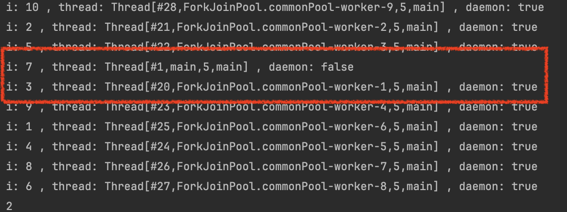 위 결과를 보아 ForkJoinPool은 daemon thread를 사용하고 있다.