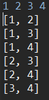 {{1,2}, {1,3}, {1,4}, {2,3}, {2,4}, {3,4}} 이렇게 된다.